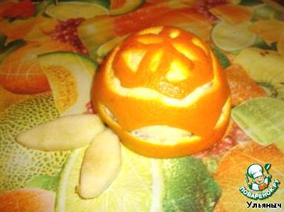 1) Рыжее солнце: на половинке апельсина ножом вырезать любые узоры. Этим солнышком накрыть бокал.