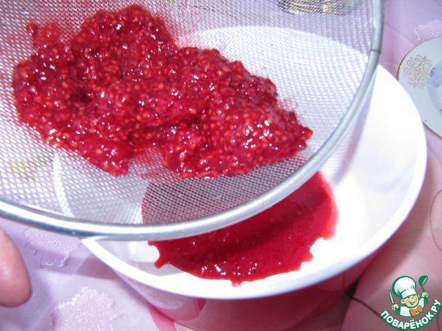 Малину перебрать, промыть, обсушить, протереть через сито.