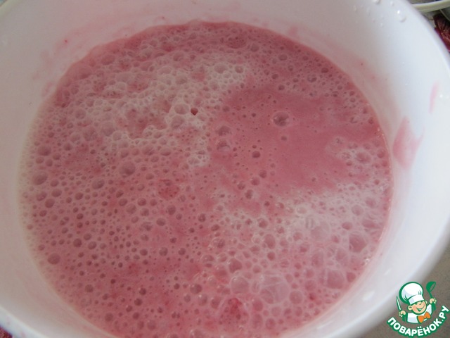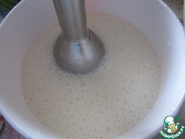 Кислое молоко взбить с сахарной пудрой в пышную массу.
