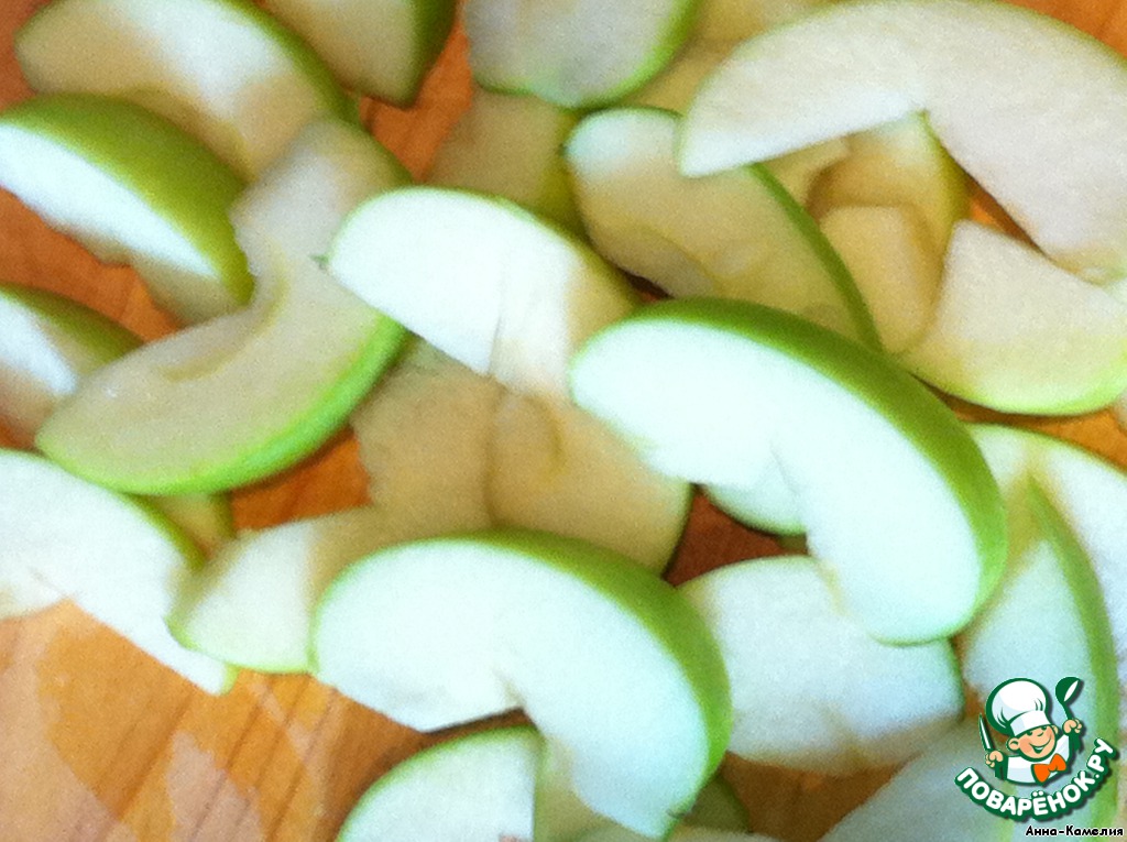 Яблоки режем дольками, очистив от косточек, но кожуру оставляем.