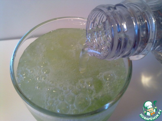 Затем наливаем газированную минеральную воду и всё хорошо перемешиваем.