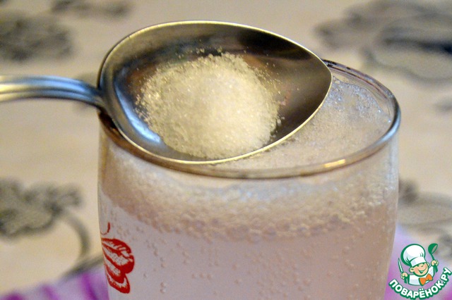 Добавляем чуть меньше половины чайной ложки соли в напиток, тщательно размешиваем. При взаимодействии лимона и соли напиток вспенится.