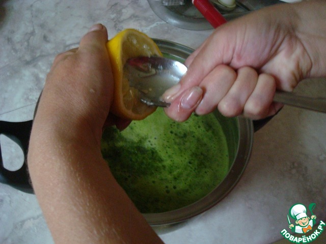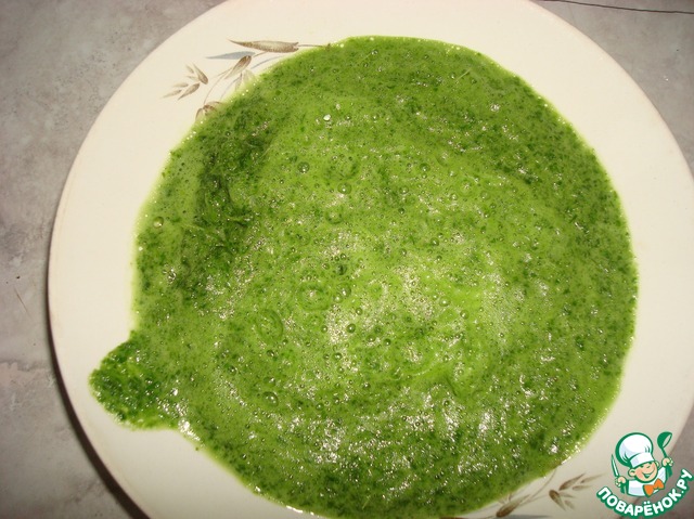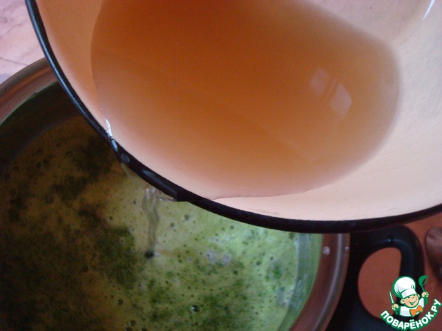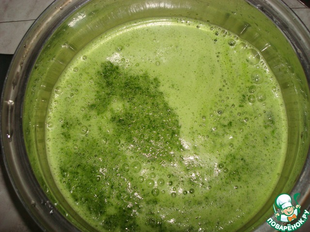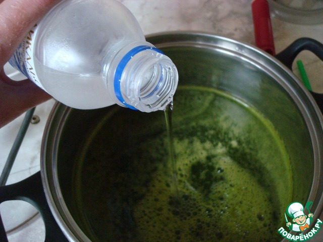 Добавить в это жизнерадостно - зелёное пюре пол литра воды,