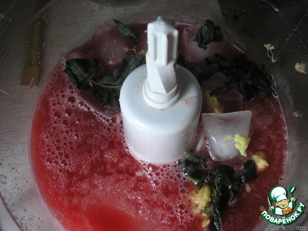 Добавьте лед, мяту, имбирь и сахар. Взбивайте, пока лед не измельчится.
