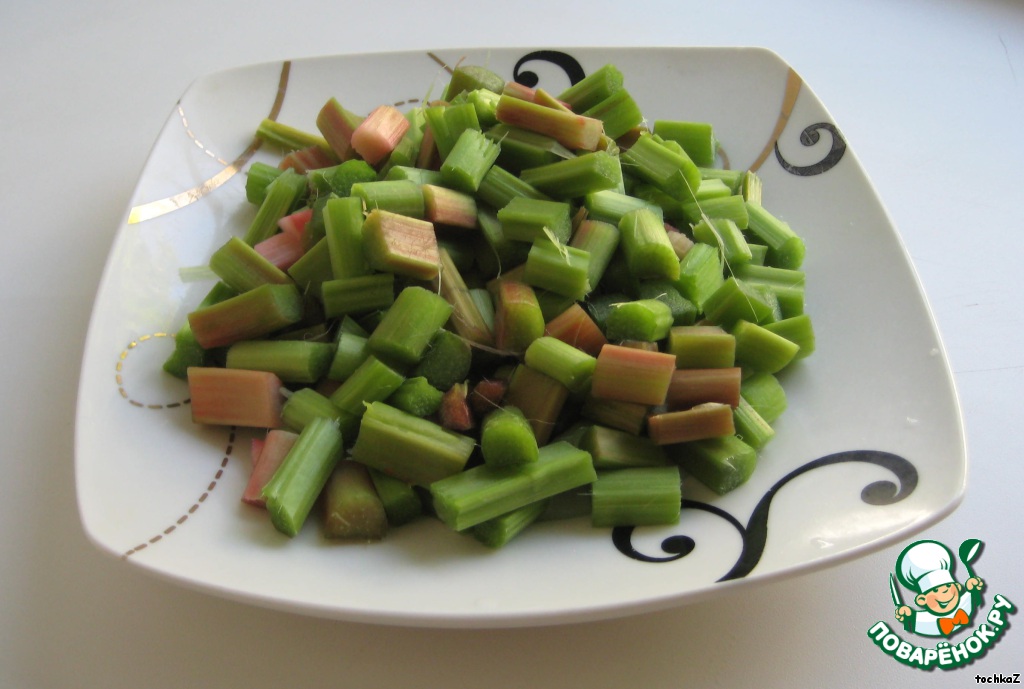5 крупных стеблей ревеня помыть, очистить и нарезать небольшими кусочками.