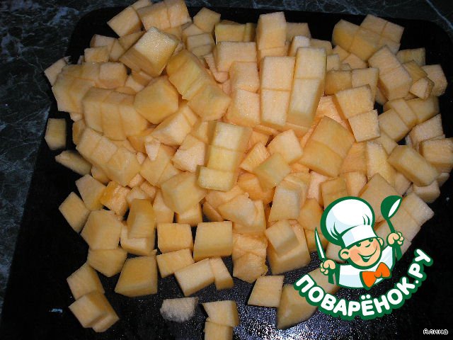 Тыкву нарезаем кубиками примерно 2х2 см.