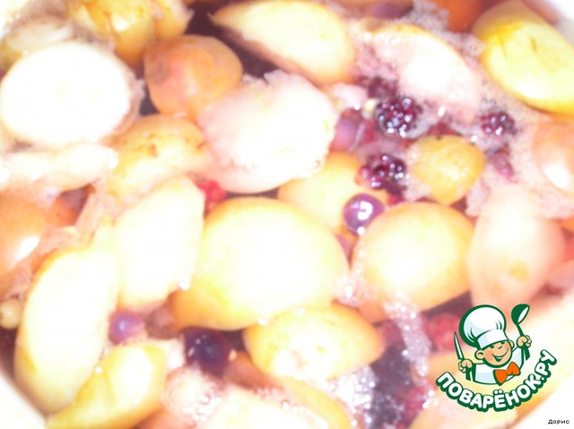 Добавить горсть ежевики, ложечку сливового варенья и 3-4 ст.л. с горкой сахара. Закипит - и готово.