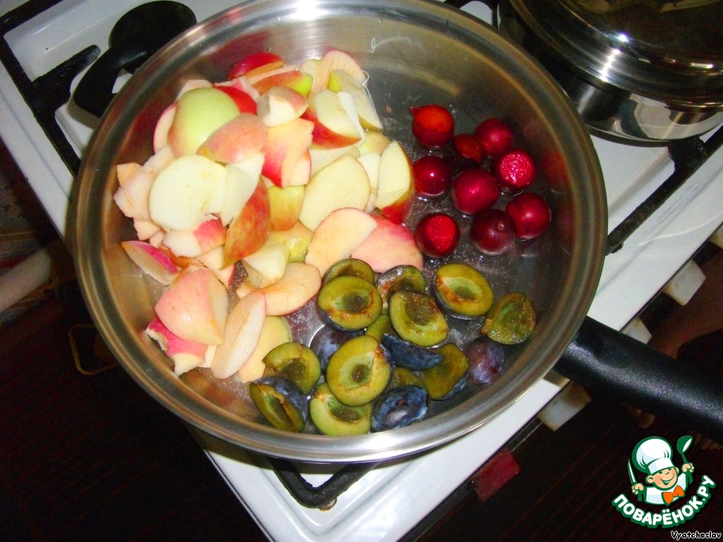 Кроме яблок и слив возможны любые традиционные для компота сочетания фруктов и ягод. Выбирайте себе по вкусу!)
