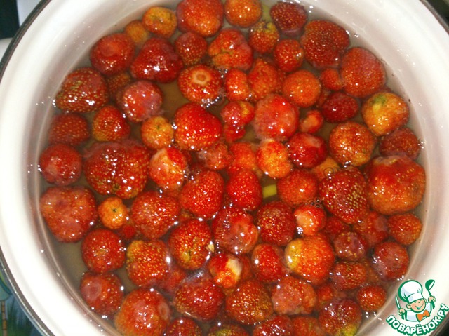 Минут через десять, когда вода немножко остынет, помещаем ягоды, пересыпанные сахаром, ставим на маленький огонь.