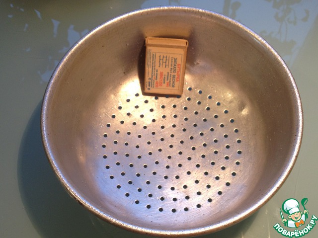 Для второй фильтрации я использую вот такой микродуршлаг с диаметром дырочек в 1.5 мм. То есть, вот именно такое сечение дырочек обеспечивает необходимую фильтрацию. Мельче нельзя — всё заткнётся. Крупнее нельзя — семечки пролезут.