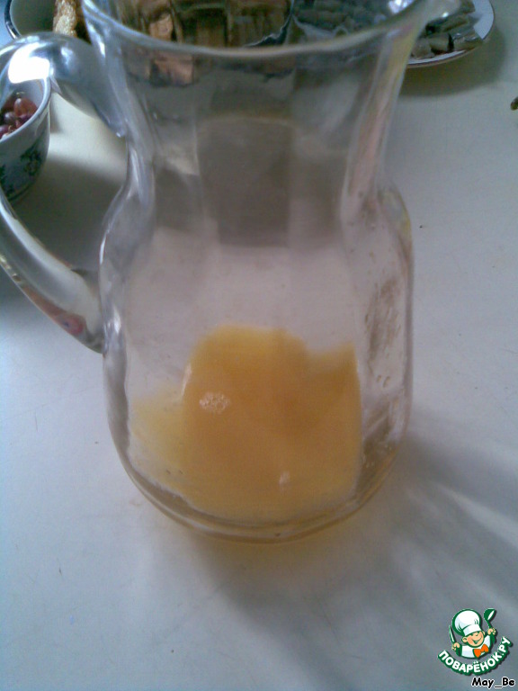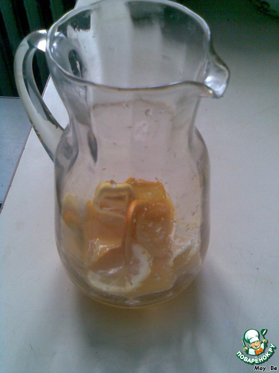 Выдавить сок из 1,5 апельсинов и половинки лимона. Вместе у меня получился почти стакан.