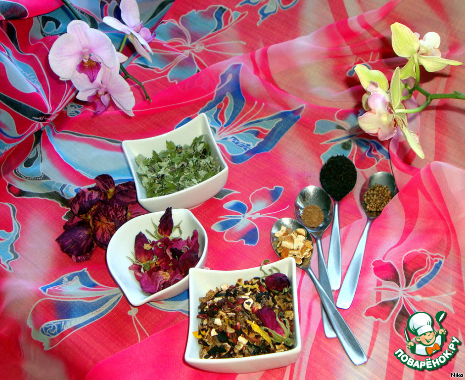 Указанные пропорции растений поместить в термос и залить крутым кипятком. Настаивать не больше часа (40 - 60 минут). Чай из лекарственных трав не кипятят и не выпаривают, так как все полезные вещества улетучиваются с паром, и остаётся яд. Можно довести до кипения и снять с плиты для настаивания.