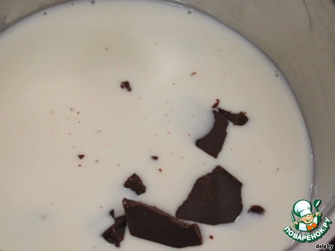 В кастрюльке нагревайте молоко и мелко порубленный шоколад, постоянно взбивая.
