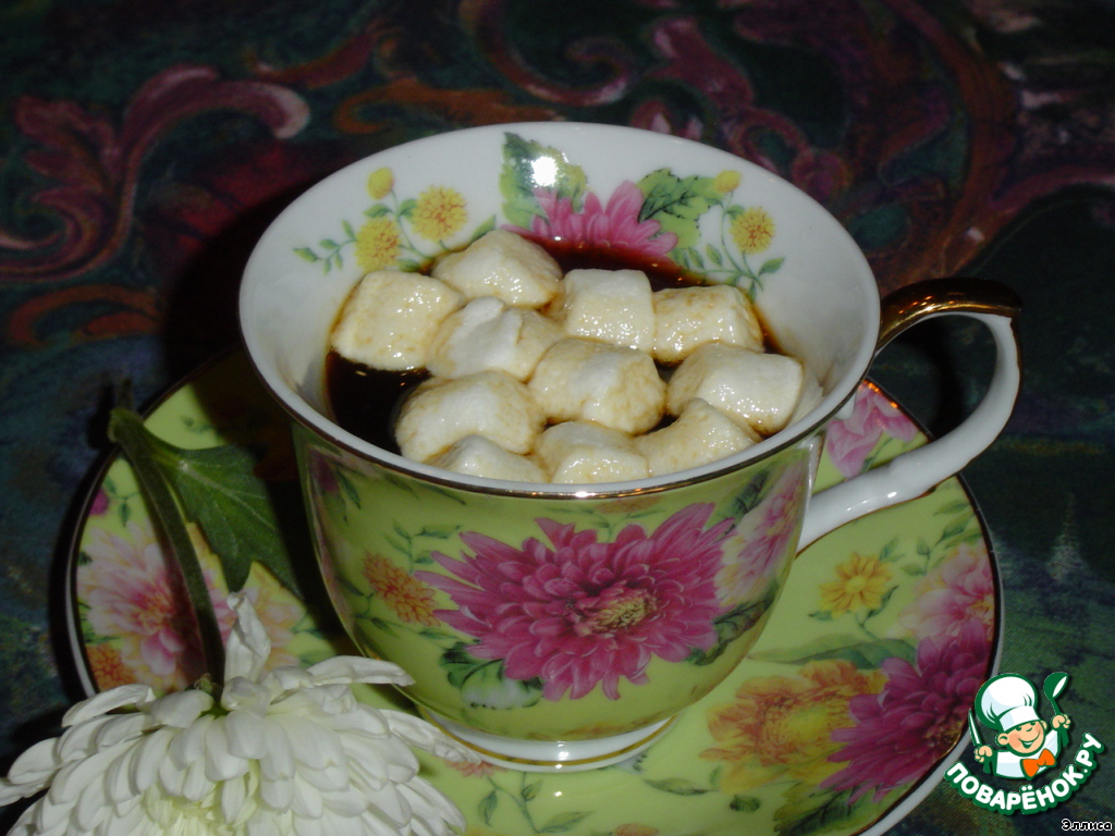 Варим кофе, наливаем в чашку, сверху кладем несколько маршмеллоу.