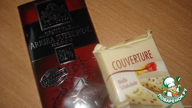 Шоколад - самый чёрный - желательно без добавок. У меня был чернее-чёрного: 81%, но есть ещё чернее!!!