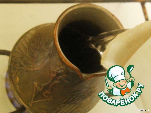 ...когда начнёт подниматься пена, снимаем турку с огня. И так три раза. Ни в коем случае не допускать кипячения!