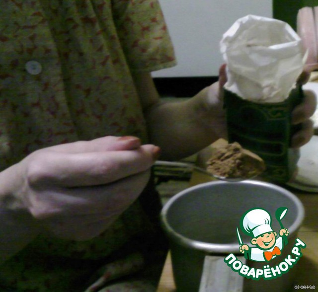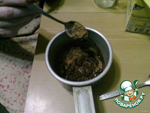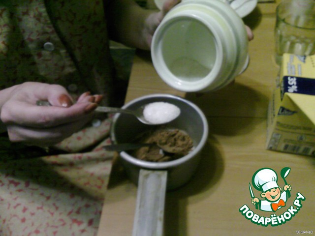 Какао-порошок размешать с сахарным песком (я кладу очень мало сахара, но можно и больше, если кто любит).