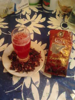 Вскипятить 5-5,5 литра воды, положить каркаде и снять с огня. Остывший отвар процедить через марлю, хорошо отжать и положить сахар, размешать. Добавляем дрожжи и оставляем для брожения.
