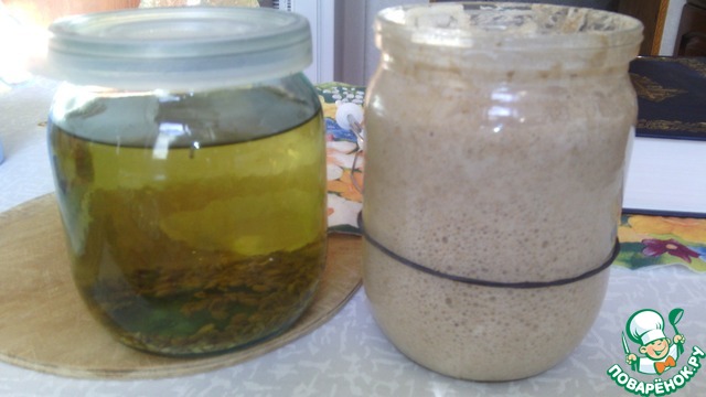 На фото справа " выросшая" в 2 раза ржаная закваска.