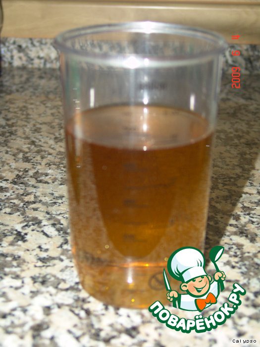 Отмерить и смешать винный уксус и оливковое масло. Я готовила половину дозы, получилось 450мл соуса.