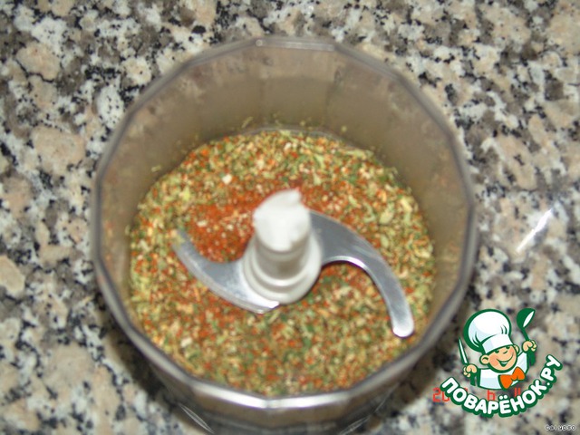 Смолоть и смешать все ингредиенты (до однородного состояния),