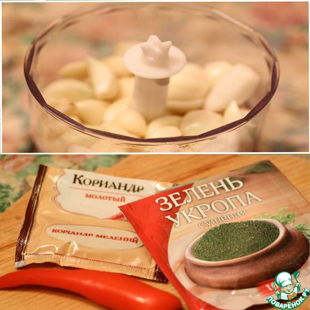 Чеснок с перцем чили измельчаем и добавляем в вишню, также сразу все специи, сахар, соль и соевый соус. Теперь, что касается кориандра, предлагаю вам все таки пробовать, добавьте сначала половину, попробуйте и потом добавьте еще. Я кладу примерно 15 гр. А вот моя соседка любит побольше, у нее уходит 25 - 30гр.