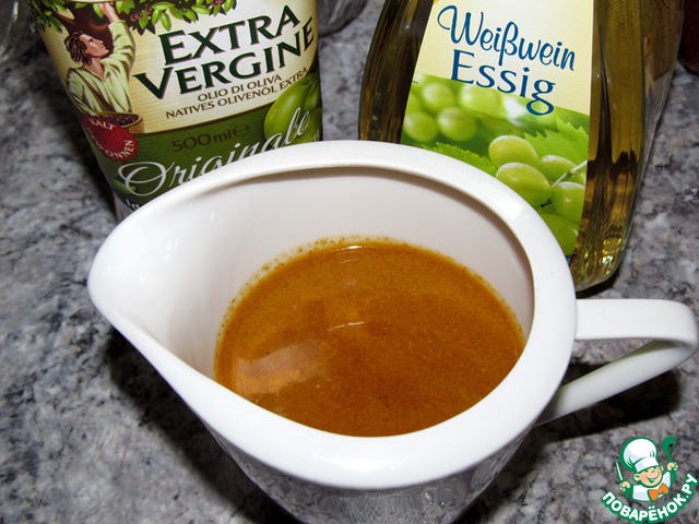 Мелко нарезанный чеснок, зиру и паприку взбиваем блендером, понемногу добавляя оливковое масло. В конце добавляем винный уксус и еще 1 минутку взбиваем.