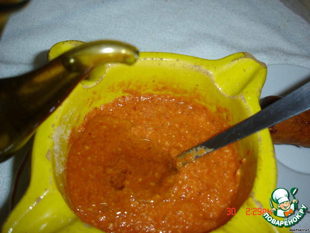 Как я говорила, есть много различий в рецептах соуса: где-то добавляют печеный лук, лесные орехи, перец толкут сухим вместе с миндалем и т.д. Все зависит от традиций каждого региона, однако результат всегда один: вкусный, сытный соус, который делает каталанские блюда легкоузнаваемыми.