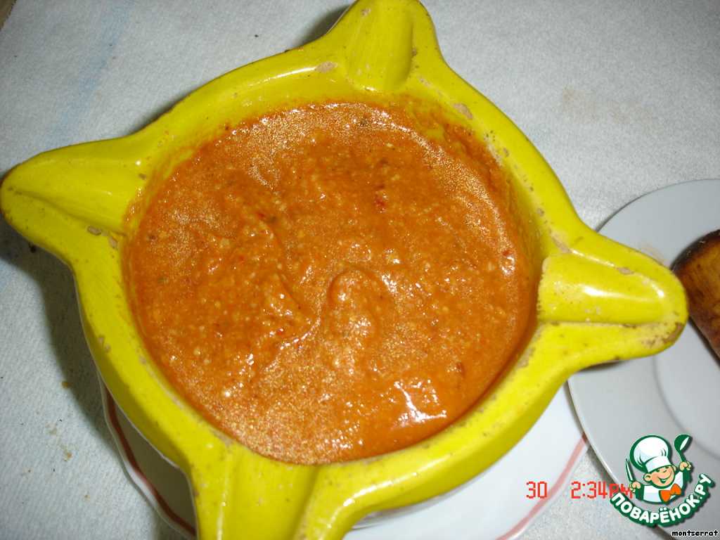 | Соус ромеско - гордость каталанской кухни, ее культурное достояние. Право считаться его родиной оспаривают два региона Каталуньи-Ситжес и Таррагона. Именно там, среди горных склонов, поросших миндальными деревьями, и родился этот знаменитый соус. Процесс его приготовления был достаточно трудоемким, поэтому его делали сразу в большом количестве, соус хорошо хранился. Каждая семья имела свой фамильный рецепт, секреты которого передавались из поколения в поколение. Из уважения к традициям я приготовила ромеско по старинному рецепту и старинной технологии: все ингредиенты истолкла в глиняной ступке. Сейчас в супермаркетах продают соус промышленного производства, он имеет мало общего с традиционным ромеско. Но если вам придется обедать в хорошем каталанском ресторане, вам обязательно подадут к мясу, морепродуктам или овощам настоящий каталанской соус ромеско. Традиции не умирают... Загружая этот рецепт, я понимаю, что не найду много последователей. Я подаю его исключительно в информативных целях, как экскурс в историю и традиции моей любимой Каталуньи |