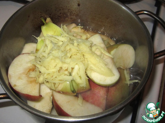 Добавить яблоки и имбирь и варить еще 20 минут.