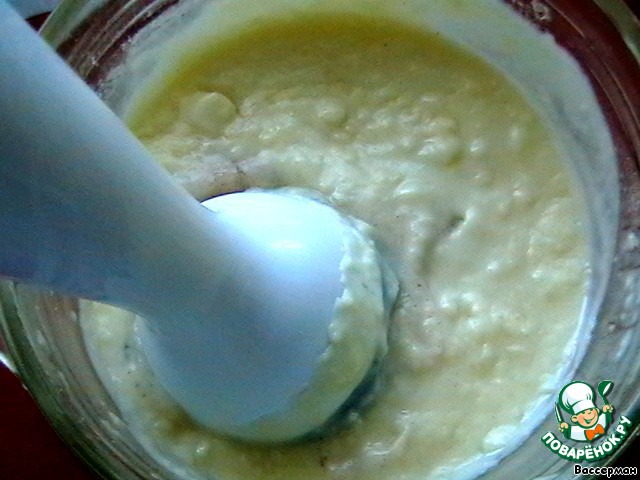 Снимем с огня, добавим соль и ванилин и хорошо перебьем всю массу блендером, чтобы оставшиеся упрямые комочки все же "разошлись".