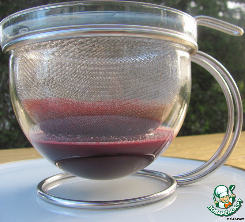 Я же обычно затем измельчаю блендером и пропускаю через мелкое сито. Для этих целей я использую вот такой чудесный заварочный чайник! Массу, которая осталась в сите, заливаю кипятком - получается ягодная медовуха (безалкогольная).