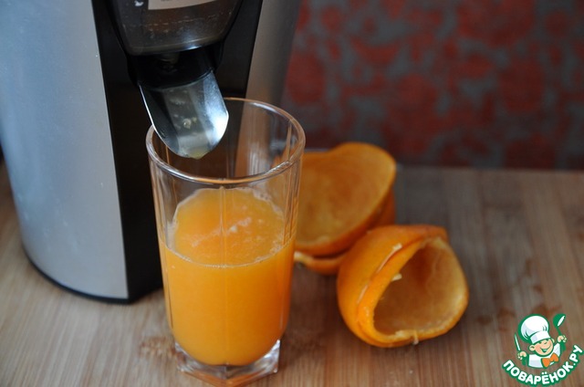 Готовим соус. С помощью соковыжималки из мандаринов делаем свежевыжатый сок.