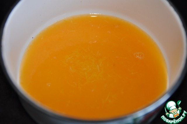 На водяную баню ставим кастрюльку с мандариновым соком, соком половины лимона и натёртой лимонной цедрой.