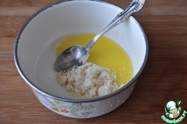 Яичный желток перетираем с миндальной мукой. В оригинале был молотый сладкий миндаль.