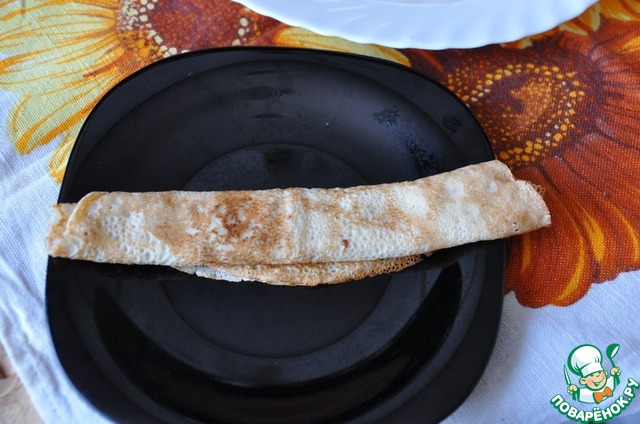Блин, свёрнутый пополам, сворачиваем в трубочку.