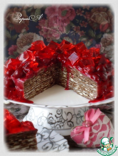 Застывший торт полить вишневым соусом и подать к столу. Приятного!!