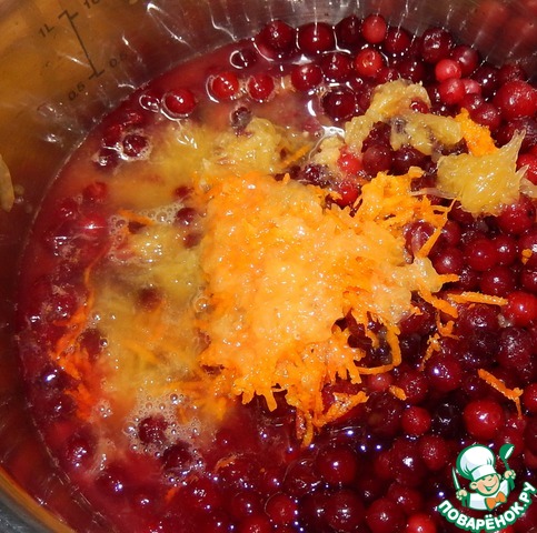 Начинаем с соуса. Бруснику моем, выкладываем в сотейник. Апельсин моем, снимаем с него цедру и выжимаем сок, отправляем к бруснике ставив на огонь доводим до кипения и выключаем. Кипятить ягоды больше 4-5 минут нельзя иначе разрушится весь витамин С.