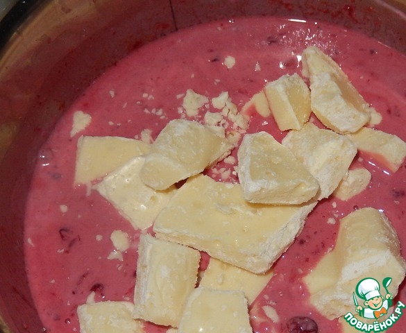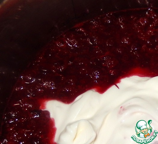 Ягоды нужно немного остудить примерно до 80 градусов, затем добавить к ним сливки, аккуратно перемешать.