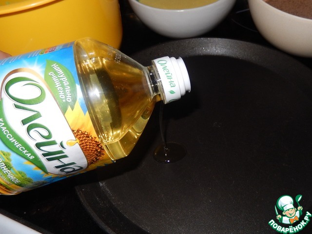 Разогреваем сковороду, смазанную небольшим количеством масла. Для желтого теста берем шприц на 20-25 мл. Блины выпекаем на среднем огне. У меня плита электрическая с 6 режимами я пекла на 3.