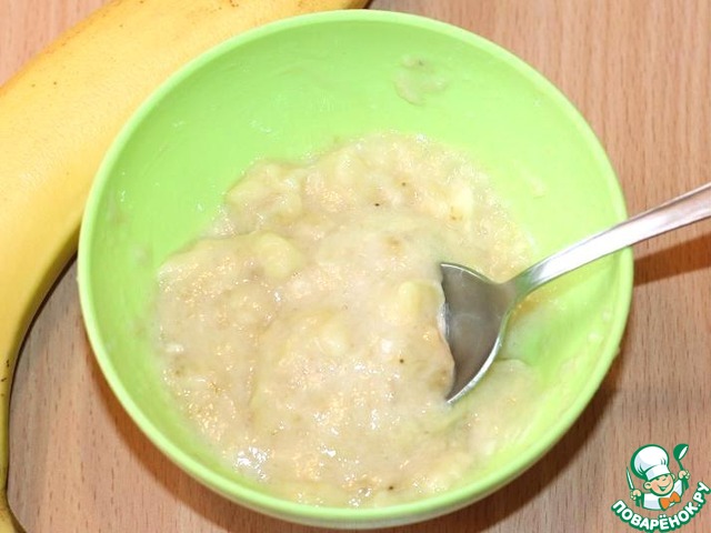 Банан протереть на мелкой терке или пюрировать удобным для вас способом.