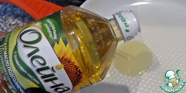 Сковороду смазываем небольшим количеством растительного масла. У меня ТМ "Олейна" - подсолнечное с добавление оливкового.