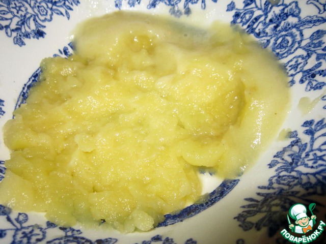 Почистить яблоки, сделать из них блендером пюре (я запекла и протерла через сито).