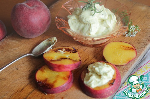 Теперь поджариваем на гриле персики (они должны быть твердыми) и от души смазываем их кремом.