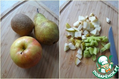 Также очень вкусно с любым фруктовым салатом. Я взяла киви, грушу и яблоко. Фрукты порезать, перемешать, полить соусом, посыпать маком.