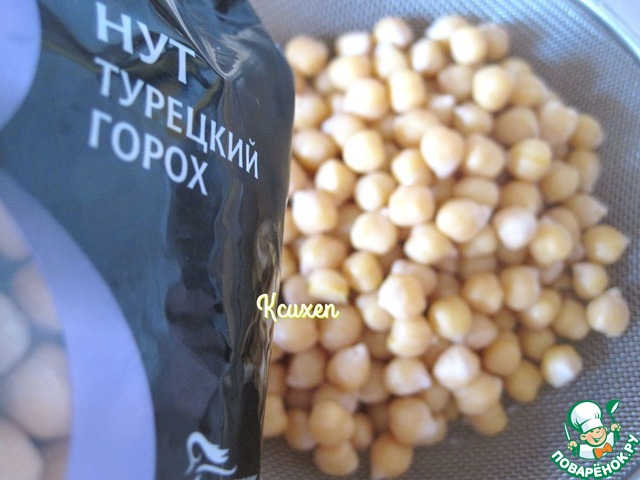 Нута я брала много для приготовления горячего блюда, поэтому сколько конкретно для майонеза понадобилось сухого гороха не скажу. Примерно пару горстей. Нут замачиваем на ночь в холодной питьевой воде в пропорции 1:4