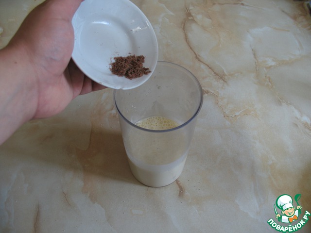 В высокий стакан для блендера вылить яйца и взбить блендером до пенного состояния