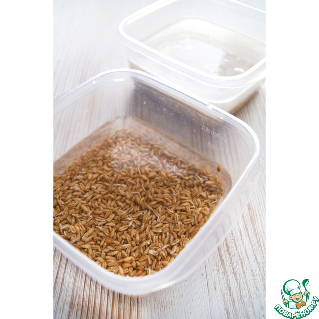 Опять же по отдельности залить злаки водой, примерно на 1 см выше их уровня, и оставить для набухания часов на 8.