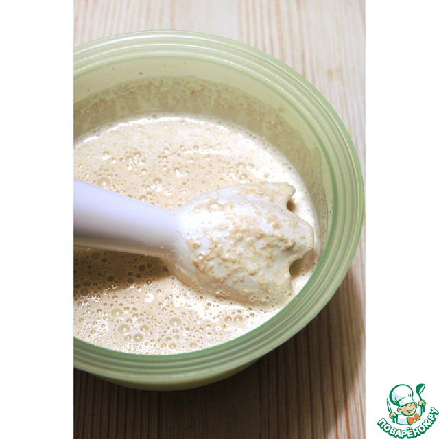 По прошествии указанного времени соединить замоченные крупу и хлопья и как можно тщательнее измельчить смесь блендером.