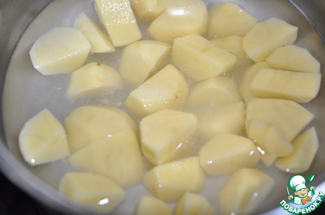 Картофель чистим, режем и варим до готовности. Солим после закипания, так она быстрее разваривается.